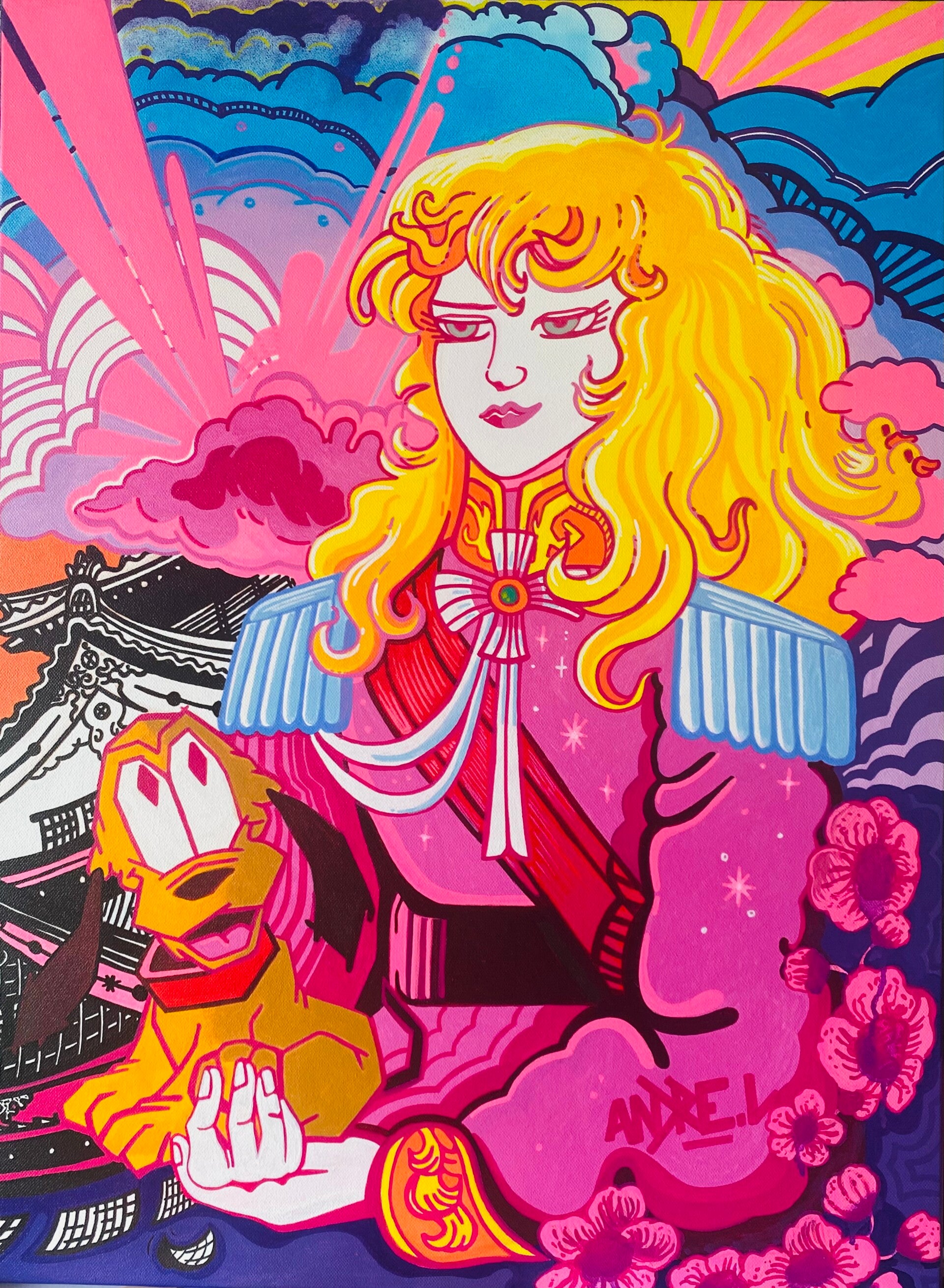 Une lady oscar qui prend la pose façon classique avec toujours un petit animal dans les bras .